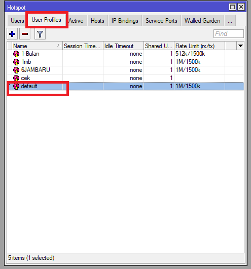 Lalu klik tab user profil dan pilih user profil yang ingin di isi iklan/advertise. contoh saya menggunakan profile default