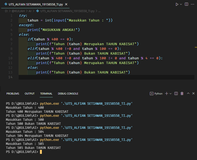 Gambar dibawah saya gunakan Visual studio code untuk running python dan hasilnya bisa dilihat.